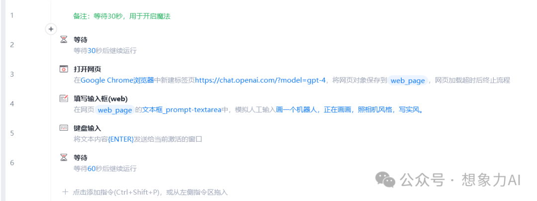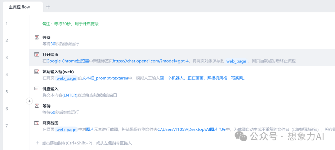第一步:添加一个等待60秒,用于等待画画完成。由于gpt作画时间不确定,所以直接等待60秒画好。