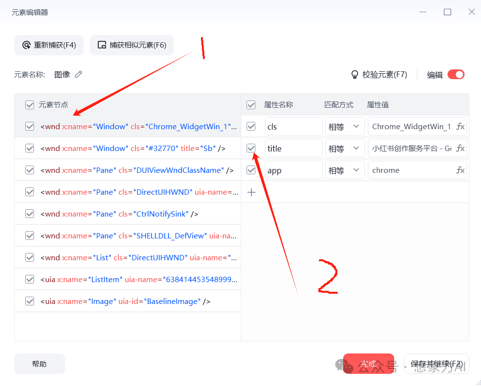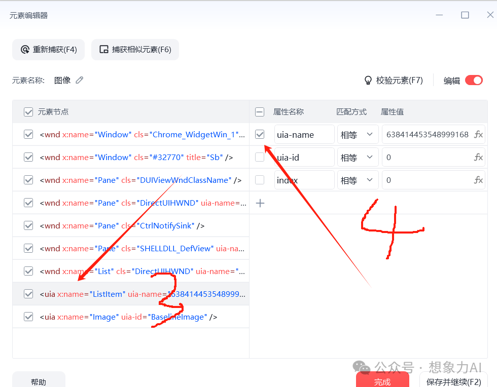 第四步:进入编辑选项,取消勾选title和uia-name,如果你打开发现不是像我图片中的这么多项,那就根据第三步重新捕捉(F4)一次图片元素。