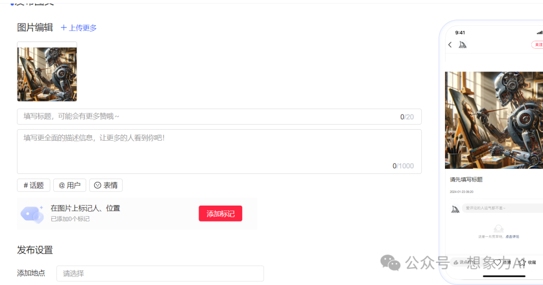 本系列文章是一个教程,如何用 RPA 写一个小红书 AI Agent。这篇文章是教程的第四篇,要实现的功能是:上传图片,排版