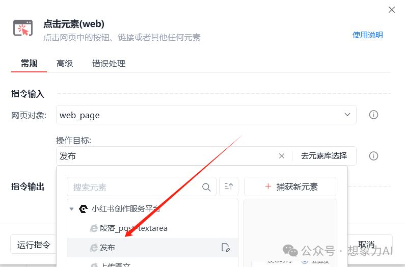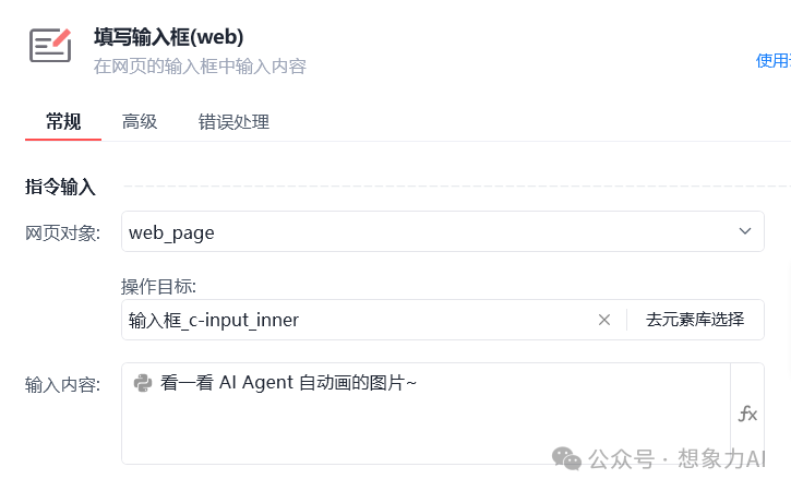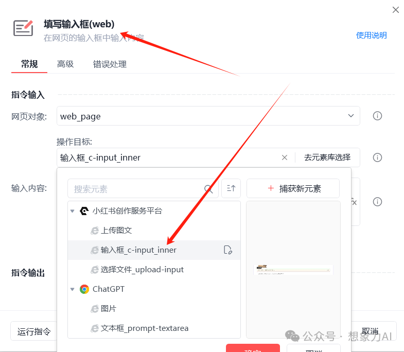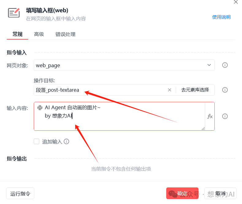 第三步:我们要捕捉内容框元素,然后同样选择这个指令“填写输入框(web)”,基本就是重复上面的步骤。