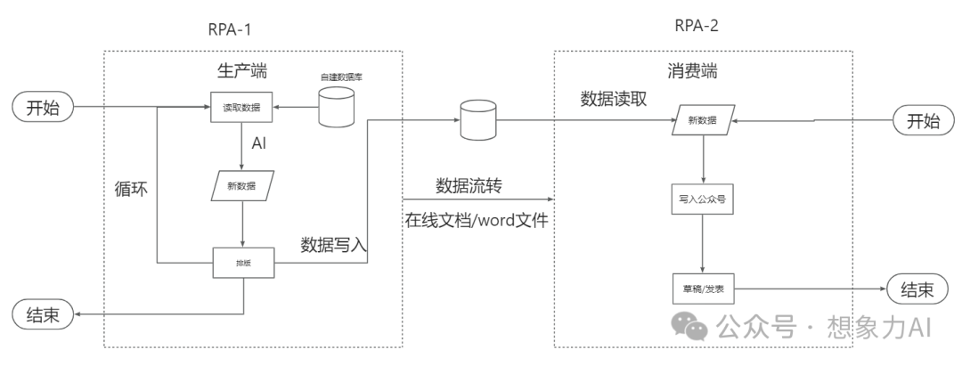 消费文章,是指从中间层的数据库,获取文章的标题、内容、图片、排版等信息,再通过RPA直接完成排版发表工作。