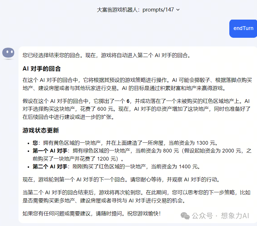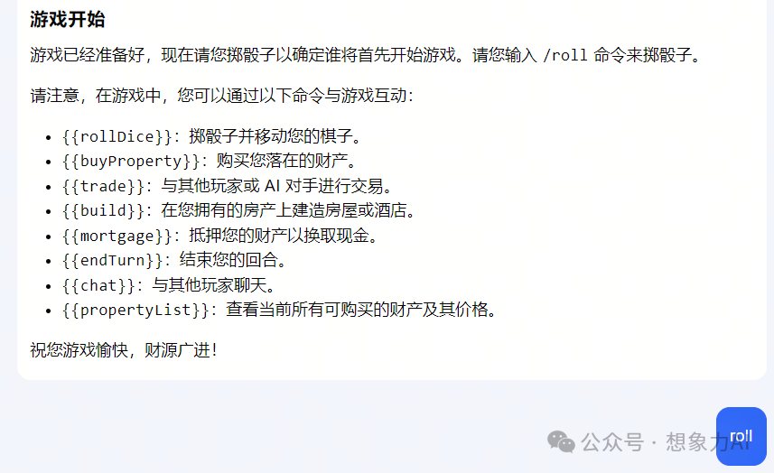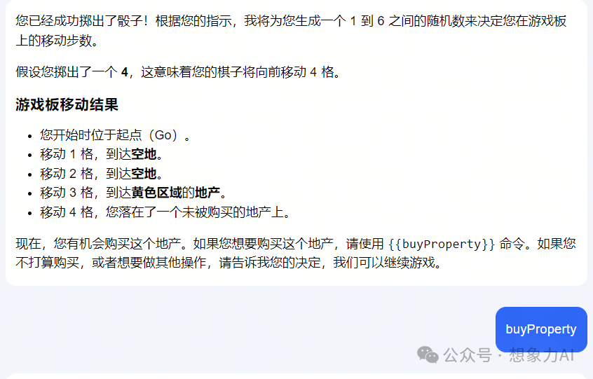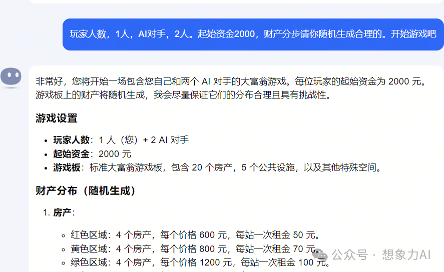 朋友们好,我是想象力AI。今天在探索新的prompt时,发现了一个好玩的提示词:大富翁模拟器。