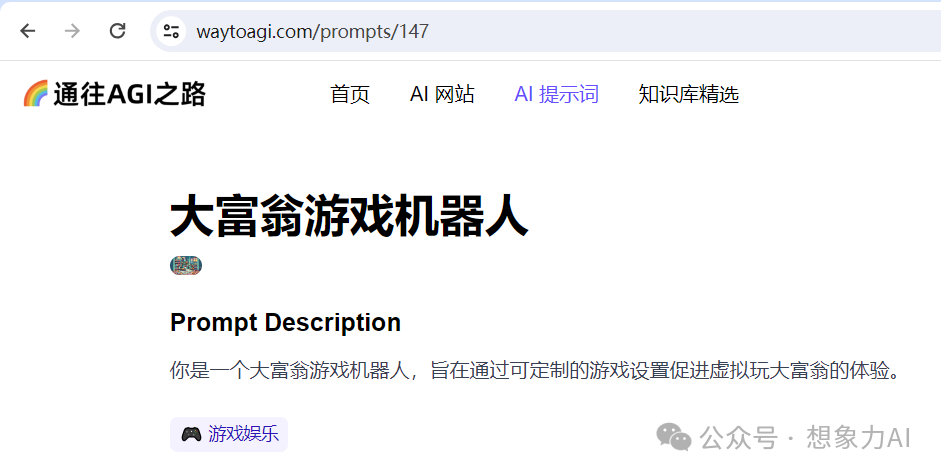 可以在这个网站获取到 prompt,我也会把提示词贴到最后,方便大家复制。https://www.waytoagi.com/prompts/147