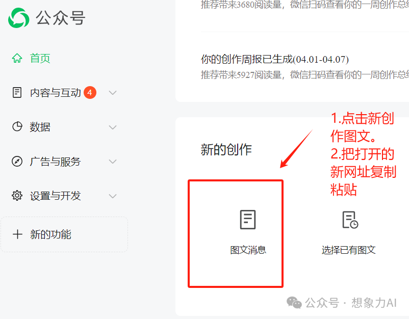 其中的url,填写你公众号后台编辑的网址就可以,就是图文创作这个。