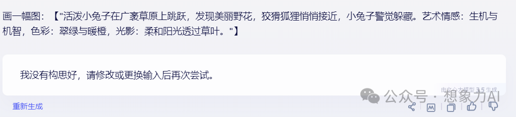 要么是不能识别太复杂的画图失败,要么不支持英文,文心啊,能不能争点气,人家 chatGPT4 都出了局部重绘功能了。
