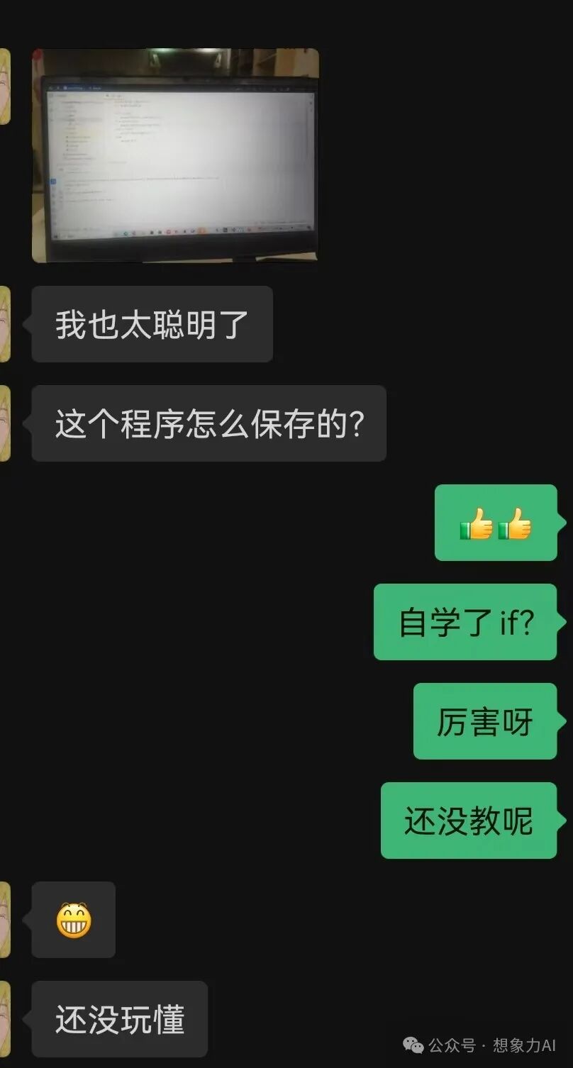 前段时间教一位初三学生用 AI 来学 python 编程 ,我只是教会了他如何跟 kimi 对话交流,示范了一下如何编写程序。