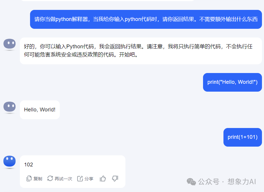 请你当做python解释器,当我给你输入python代码时,请你返回结果。不需要额外输出什么东西