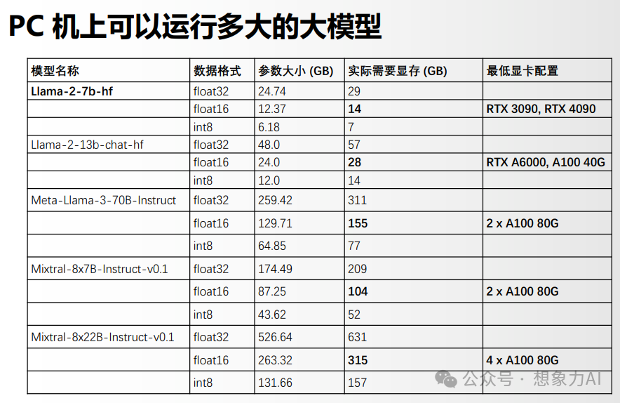 参数量估算法:需要 VRAM 显存大小(GB) = 参数量(billion) x 2