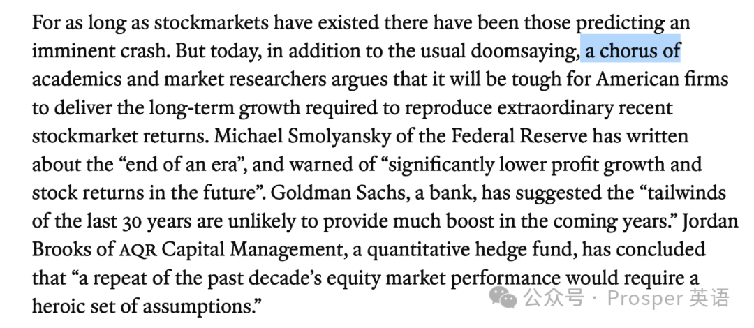 A chorus of academics and market researchers argues that it will be tough for American firms to deliver the long-term growth required to reproduce extraordinary recent stockmarket returns.