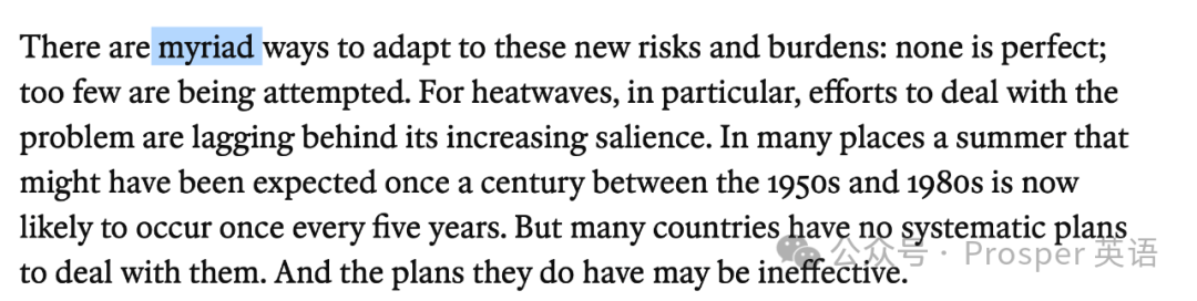 今天在阅读《经济学人》的一篇题为 “The rise of the truly cruel summer”(真正残酷的夏天的到来)的文章时,我发现了一个非常适合替代“many” 或 “a lot of”的词汇。掌握这一词汇能够显著提升你的雅思写作词汇分数。