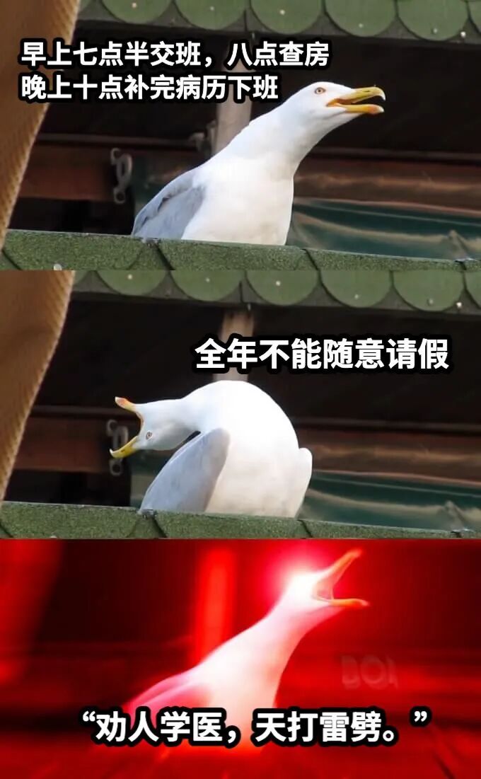 “996”是他们不敢奢望的快乐,早上七点半交班,八点查房,晚上十点补完病历下班,这才是他们真实的生活。全年不能随意请假,医患关系恶劣,经常被患者骂还受到过死亡威胁,除了本职医疗工作外,还要做和自己八竿子打不着的医院行政事务,对他们而言是再正常不过的情况。