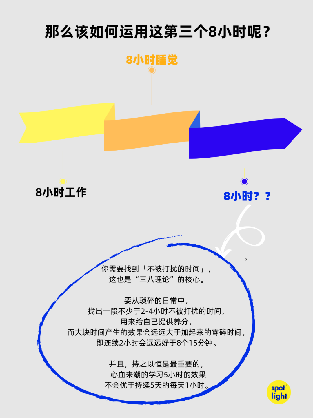 你需要找到「不被打扰的时间」,这也是“三八理论”的核心。