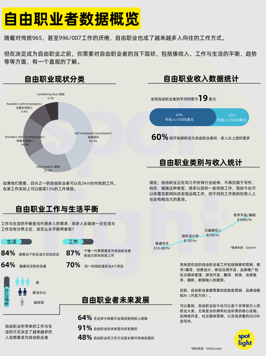 但在决定成为自由职业之前,你需要对自由职业者的当下现状,包括像收入、工作与生活的平衡、趋势等等方面,有一个直观的了解。
