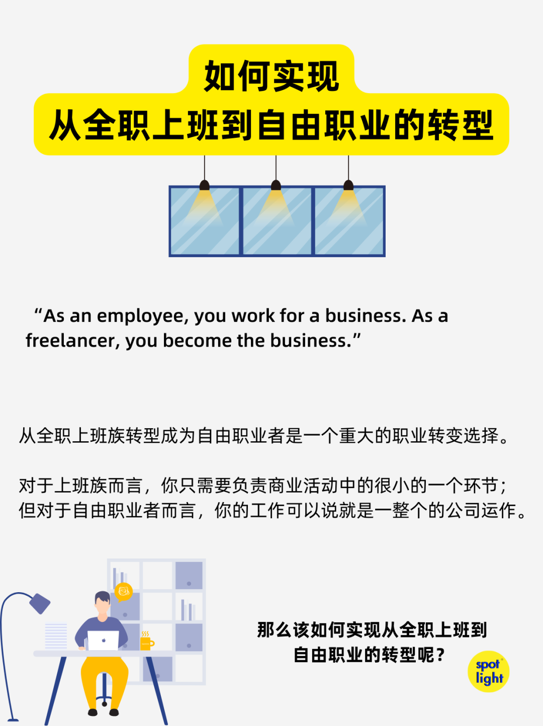 从全职上班族转型成为自由职业者是一个重大的职业转变选择。