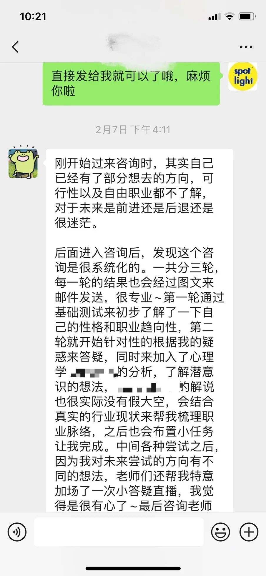 第三方机构能够从客观的角度出发,并运用专业技能和相关工具,帮助你觉察自我,并进一步了解自我,分析自身的可迁移能力并指导强化运用。