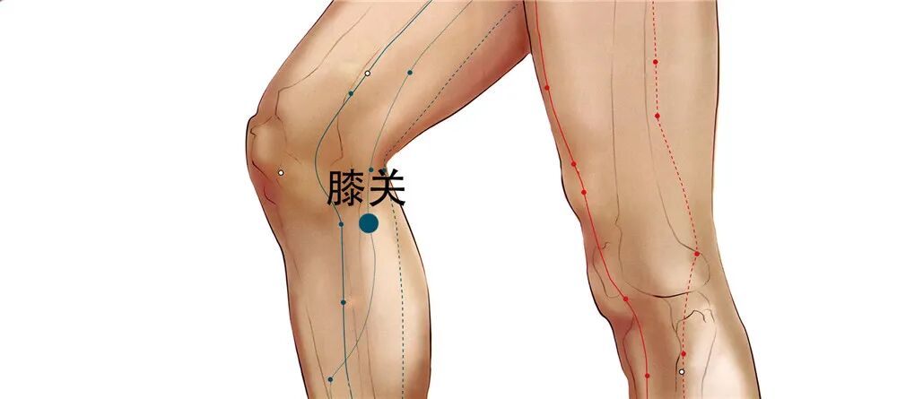 不要扎到横纹头,上五分的地方下针,这个穴道就是膝关。