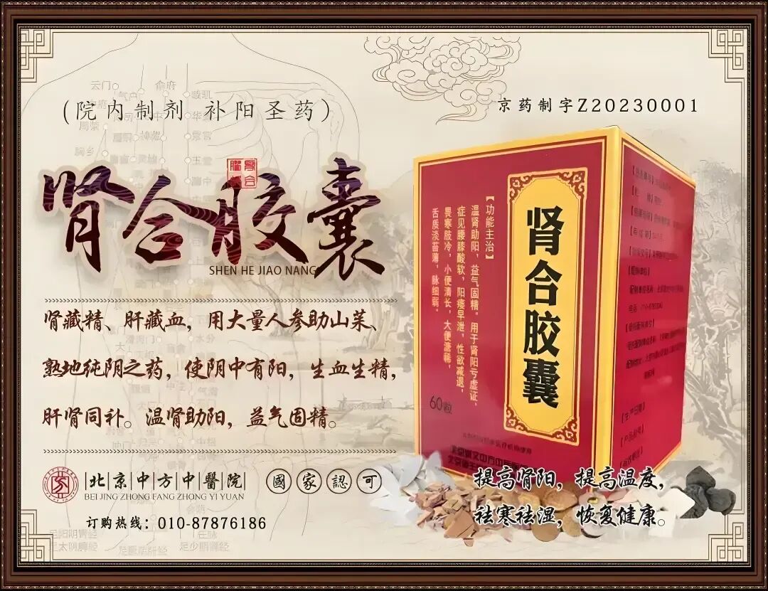 肾合胶囊是一款经过国家审批、药监局备案的专方制剂。它采用纯中药萃取而成,无任何副作用,针对肾精亏虚、肾阳不足、肾气虚弱和气血不足等症状有显著疗效。其配方包括淫羊藿、肉桂、杜仲、枸杞、熟地黄、山茱萸等数十味种药材,经过多年的道地药材提纯加工而成。