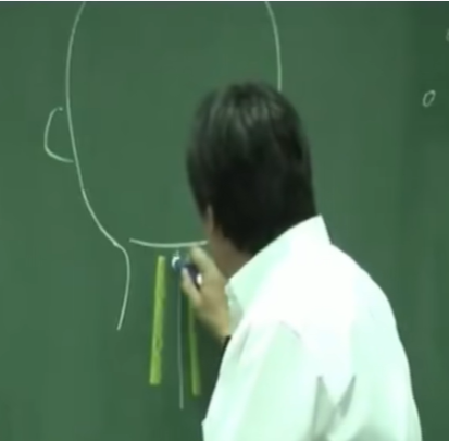 我们脑后面的骨头,下面两根大筋,大筋的中间呢,就是我们的督脉。