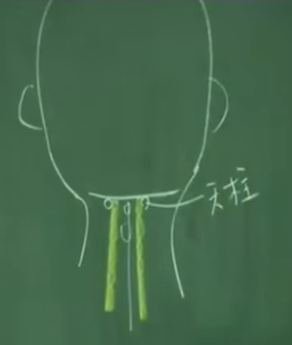 大筋呢,跟脑后脑骨交接的地方,这个我们叫做天柱。