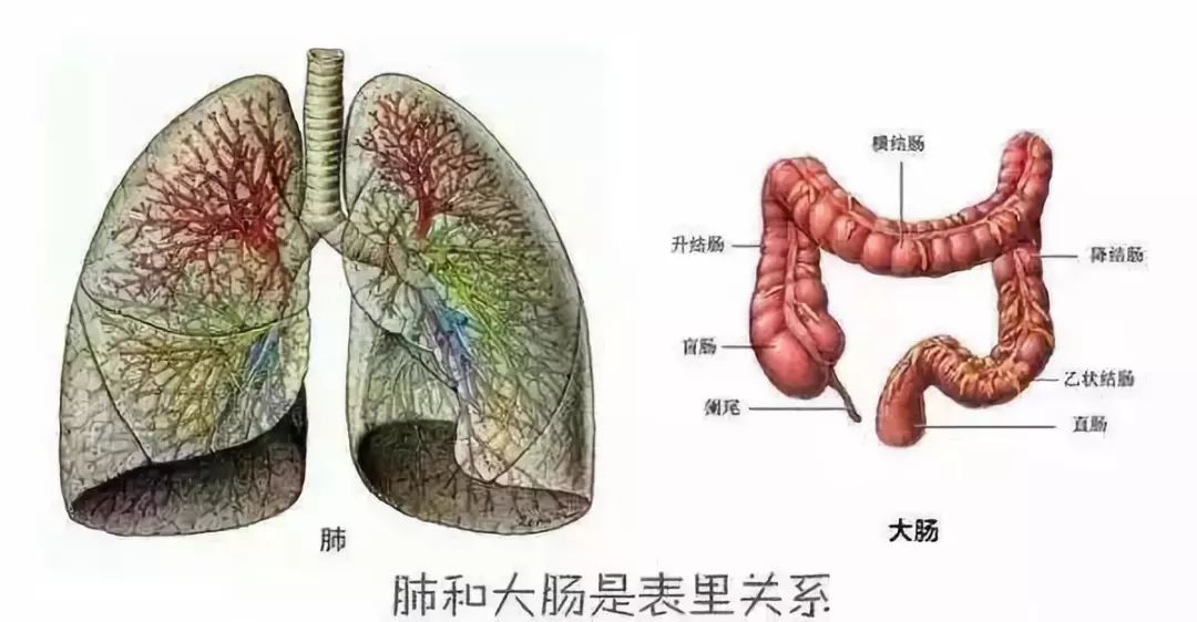 中医学认为肺与大肠相表里,也就是说关系极密切,肺气主肃降(吸气),当空气进入肺时,横膈膜也下降此时会挤压肝脏,迫使肝脏排出血液进入大肠周围因此而产生推进力,心移热于小肠,小肠受热后乃可消化食物,残渣及水进入大肠,因大肠在小肠的上方,故大肠中的水受小肠之热而生气化,此蒸汽再返回入肺,而生口水。