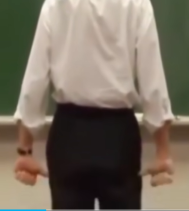 后面呢,下半身肚脐以下绷紧,手是这样握到,