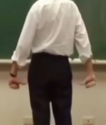 那手呢,握拳的时候这样握,这个手指头往上翘的。