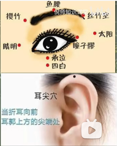 这个耳后面,还有个凹洞,太阳、瞳子髎、丝竹空、攒竹,还有耳尖,