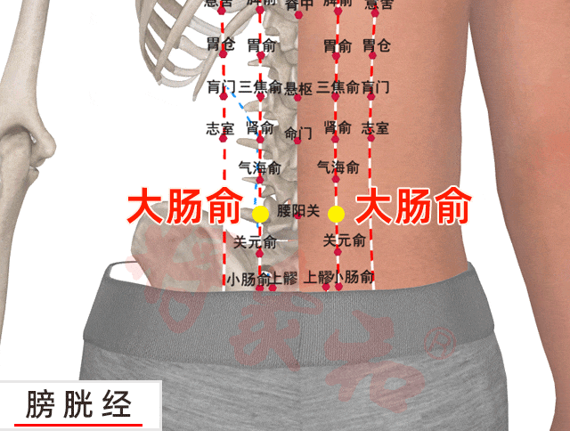 3、大肠俞:大肠背俞穴,有调节排便,增强肠道功效,也称刮油穴,有助减肚子。