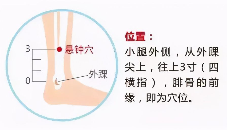 从外踝,上三寸,我们叫悬钟,另外一个名称呢,也叫绝骨穴。