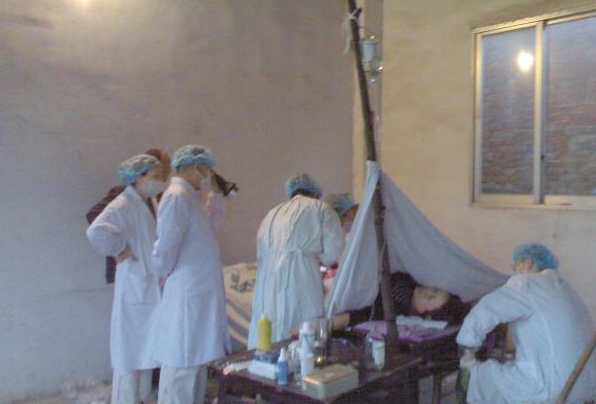 在素全法师的坚持下,僧人们打开了寺门,将门板拆下、用光禅凳和花胶布为产妇搭帐篷,这样孕妇们就可以安心生产了。5月13日早上5点多,有一个产妇阵痛严重,马上就要临盆。众人赶紧把她安置进禅房,两三张饭桌拼起来,垫些草纸,当作产床,支起一根木棍,就是输液架,没有电,大家就围着她打开手电筒照明,当手术无影灯。房门外,僧人们在院内诵经念佛,为孩子祈福。过了两个小时,产妇顺利剖腹产生下一个女孩,重7斤,母女平安。