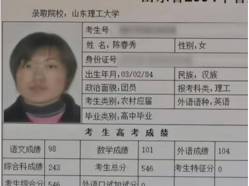 2020年5月21日,陈春秀参加完曲阜师范大学的成人高考,要在学信网上查学籍,当她输入个人信息一查,结果大吃一惊: