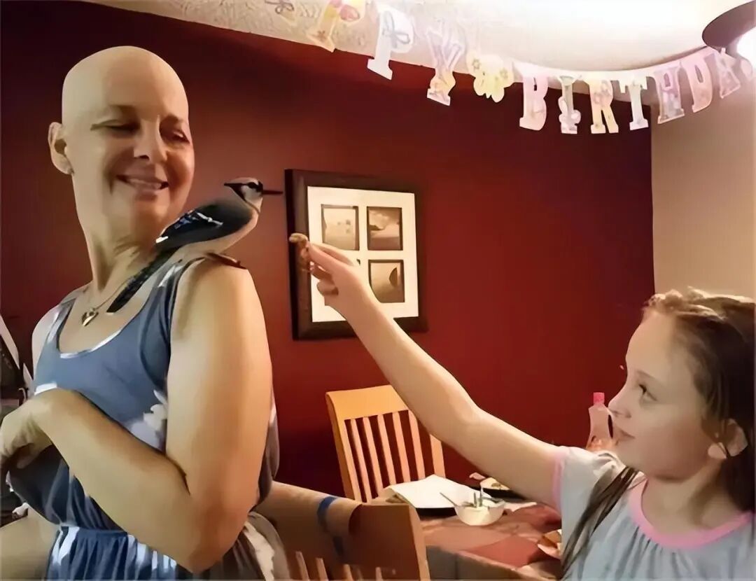 这一天,格雷西像往常一样,又飞回了蒂娜家。遗憾的是,家里大门紧锁,空无一人。格雷西在屋外盘桓许久,没有等到蒂娜。而紧闭的房门关了许久,都没有再打开。蒂娜去哪里了?原来,2016年蒂娜患上了卵巢癌,这个癌症预后十分不好,许多人撑不过5年。蒂娜一直在医院,做手术,放疗,化疗。一家人都陪伴在她身边。过了很久,格雷西又一次来到蒂娜家。蒂娜出院了,因为化疗,头发全部掉光了,但即使这样,格雷西还是第一眼,就认出了她。格雷西急切地飞到床边,站在蒂娜的肩膀上,发出好听的叫声,像是在问候这个令它日思夜想的亲人。本来被疾病折磨到抑郁的蒂娜,仿佛被治愈了般,心情变好了。她想起,当初收养格雷西时,它处在濒死边缘,却一点点挣扎着好起来了。她也要像格雷西那样顽强,蒂娜一下子对战胜疾病,有了信心。慢慢地蒂娜可以下床活动了,可以走出房间了,可以去院子里散步了。在与病魔抗争的两年里,格雷西都陪伴在她的身边,悦耳地叫着,仿佛是在为她加油打气。蒂娜越来越好了。最后一次复查,医生惊奇地发现,蒂娜身上的肿瘤居然奇迹般地消失了!太不可思议了,蒂娜打败了卵巢癌,这简直是个医学奇迹。可以说,是格雷西的报答让蒂娜获得了新生。