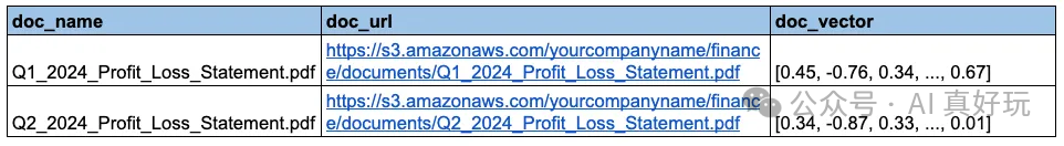 让我们看看向量数据库的模式是什么样的。假设我们正在运营一家金融科技公司,可以访问数千份财务报表,我们希望能够使用人工智能来查询这些文档。