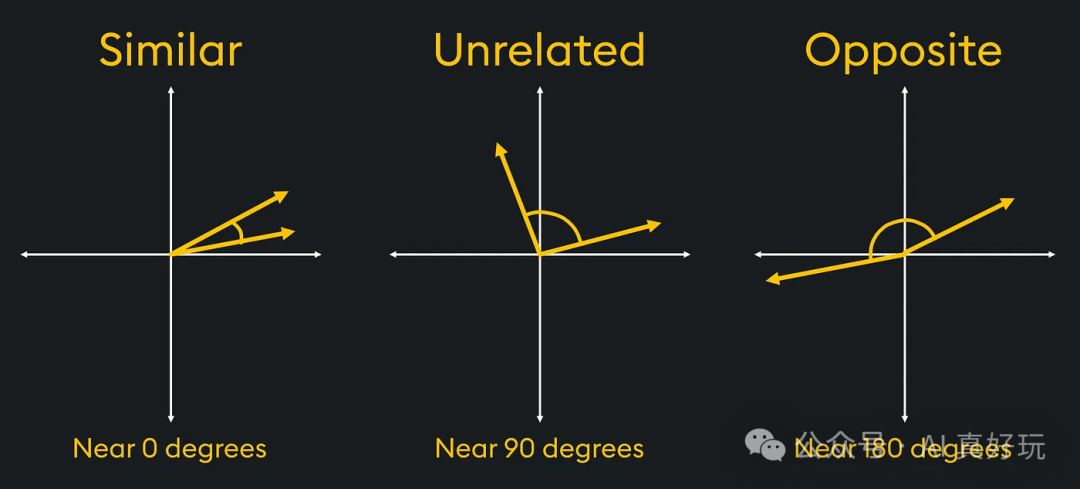 向量数据库针对相似性搜索进行了优化。有几种不同的数学方法,最常见且最容易实现的是使用余弦相似度。