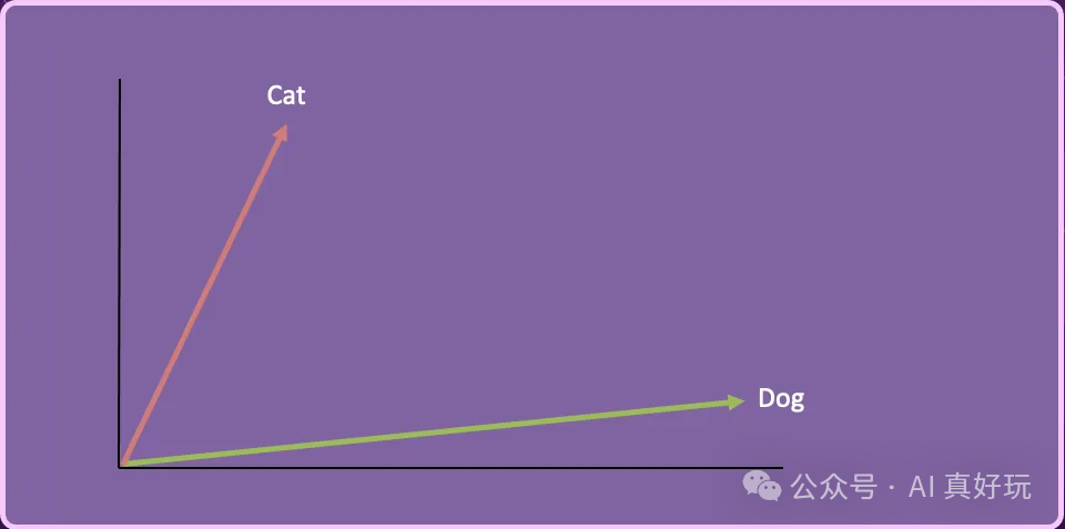 如果我们将 Cat 和 Dog 向量简化为二维,它可能看起来像这样。