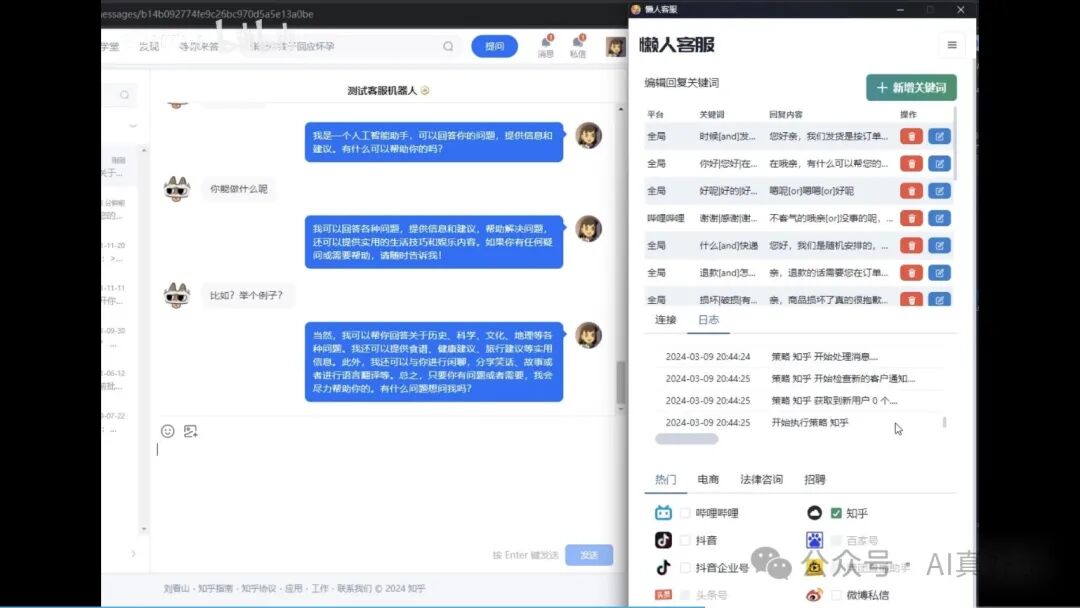 多平台支持:当前支持微信、千牛、哔哩哔哩、抖音企业号、抖音、抖店、微博聊天、小红书专业号运营、小红书、知乎等平台。