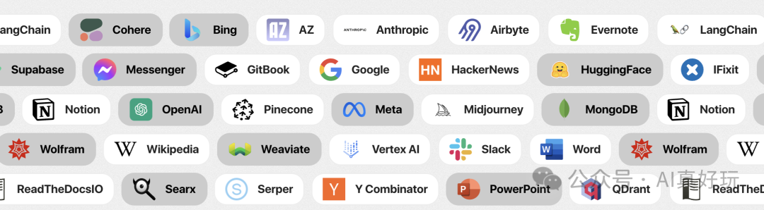 Agent 智能体: 提供了 50 多种内置工具,如谷歌搜索、DELL·E、Stable Diffusion 和 WolframAlpha 等。