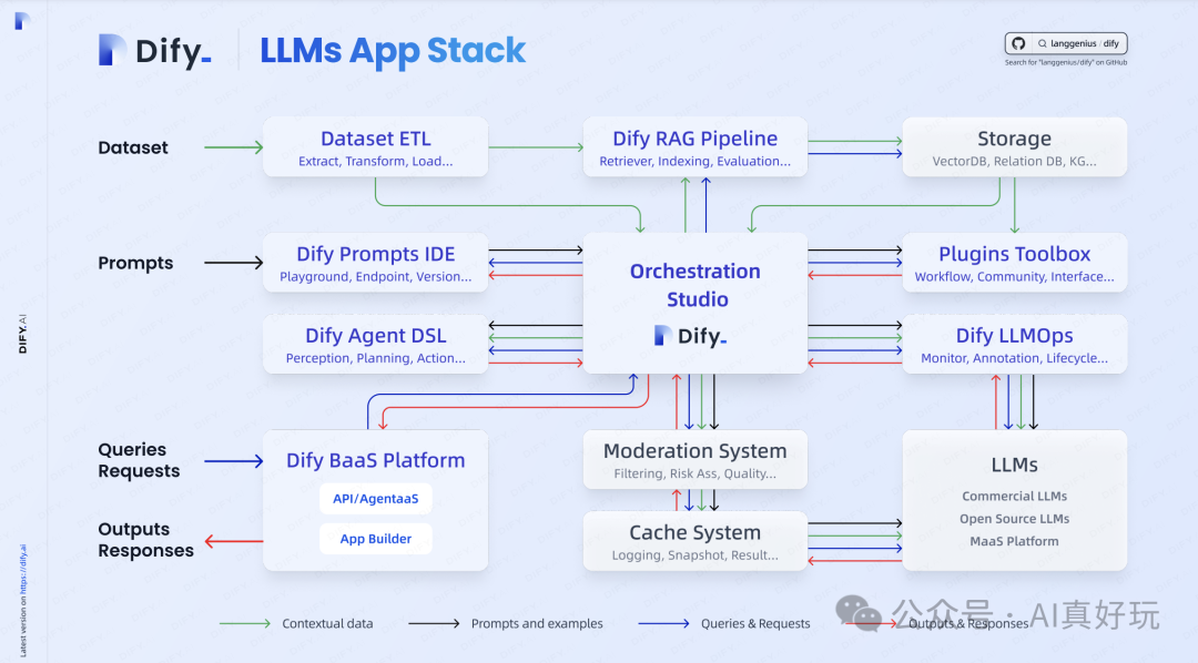 Dify 是一个开源的 LLM 应用开发平台。其直观的界面结合了 AI 工作流、RAG 管道、Agent、模型管理、可观测性功能等,让您可以快速从原型到生产。