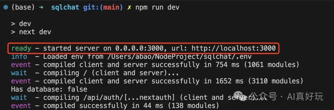 当完成项目初始化和数据库配置之后,在命令行输入 npm run dev 就可以启动项目。
