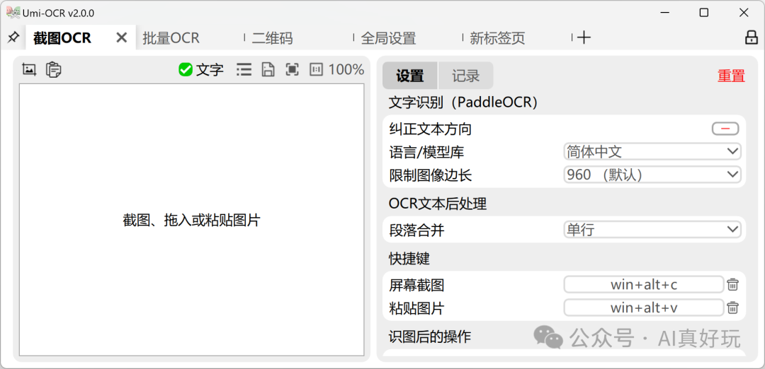 功能:截图 OCR/批量 OCR/PDF 识别/二维码/公式识别。