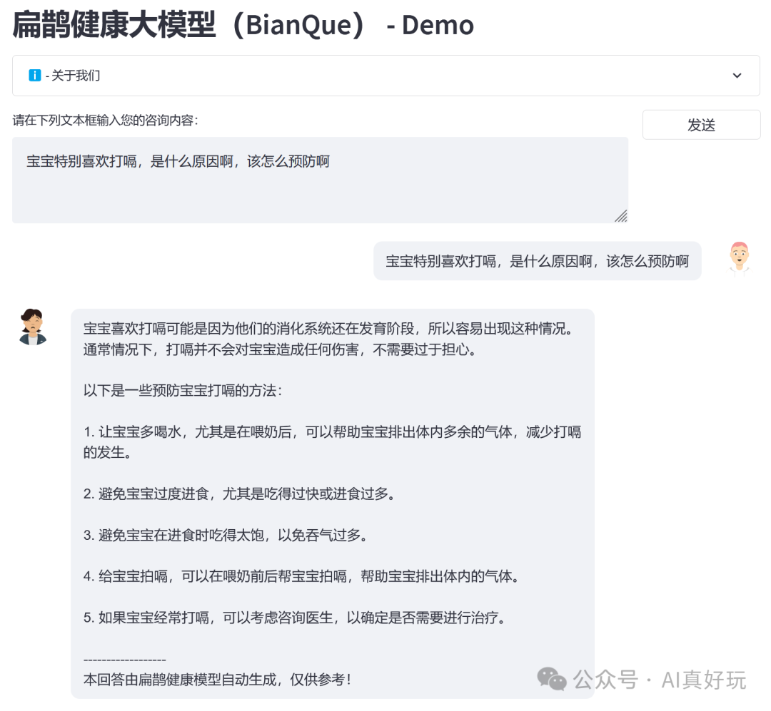 在对话的前几轮中,扁鹊-1.0 模型负责进行问询,以收集必要的信息。而在对话的最后一轮,扁鹊-2.0 模型则根据前面收集到的信息,提供了经过深思熟虑的回答。