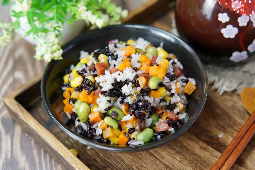 立夏饭:由五种颜色的豆米共同烹煮而成,色彩斑斓,寓意五谷丰登,人们以此祈愿生活富饶,身体健康。