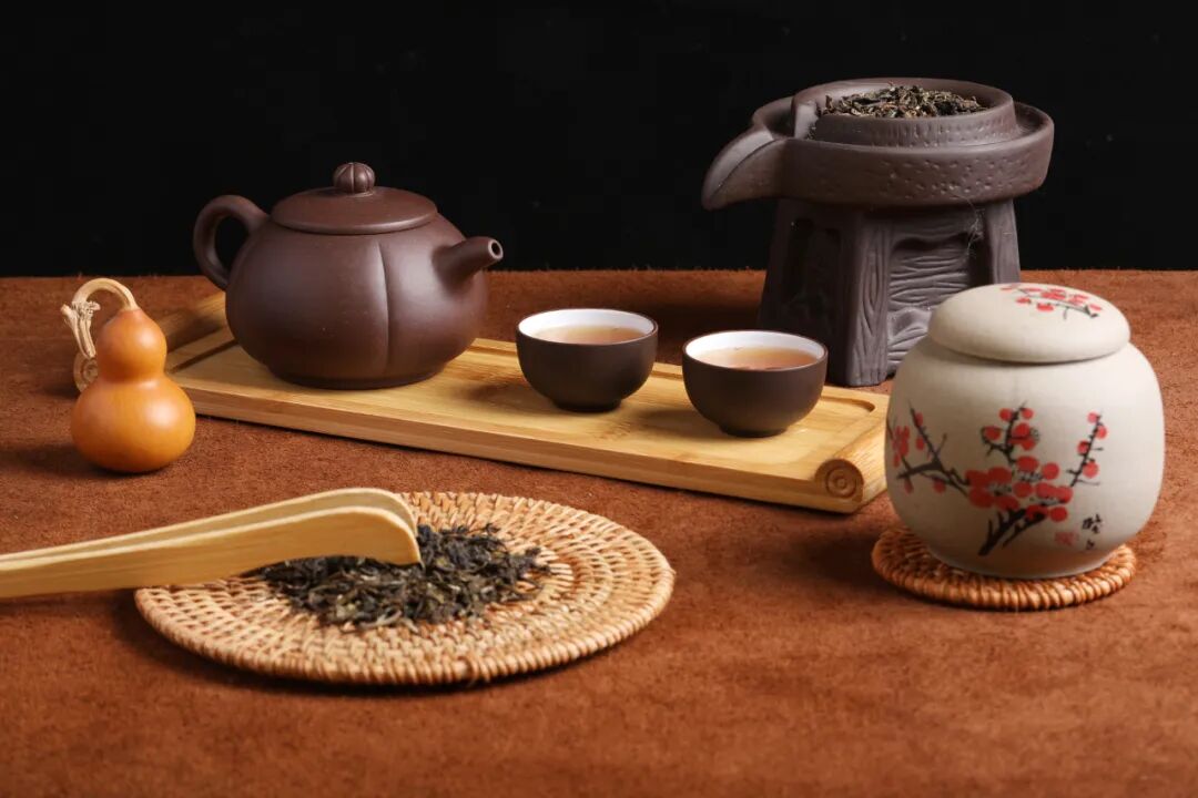 as Yixing teapots) for brewing to teacups and tea trays for serving, each item