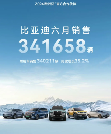 比亚迪就在刚刚公布了6月全球总销量数据,达到了历史新高,突破34万,单月累计斩获34.17万辆!