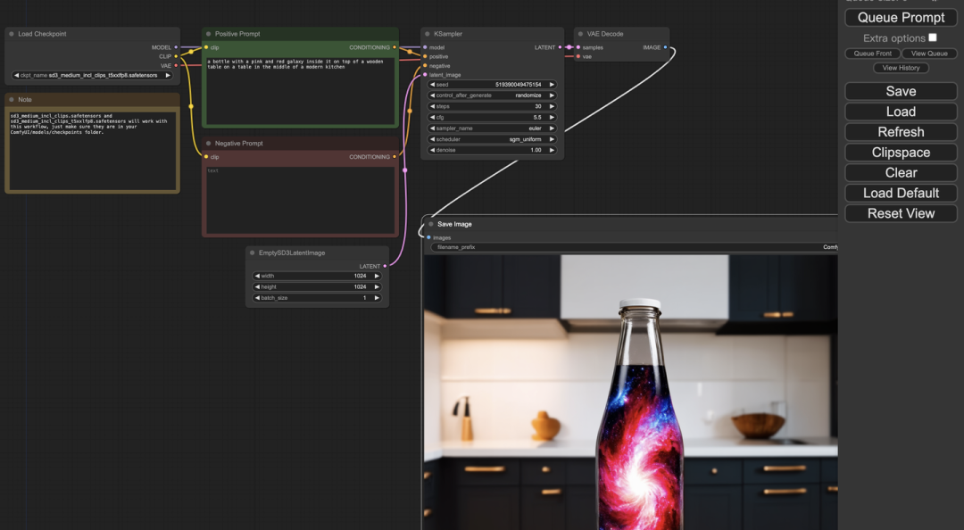 除了模型之外,StabilityAI还直接放出了SD3的ComfyUI工作流: