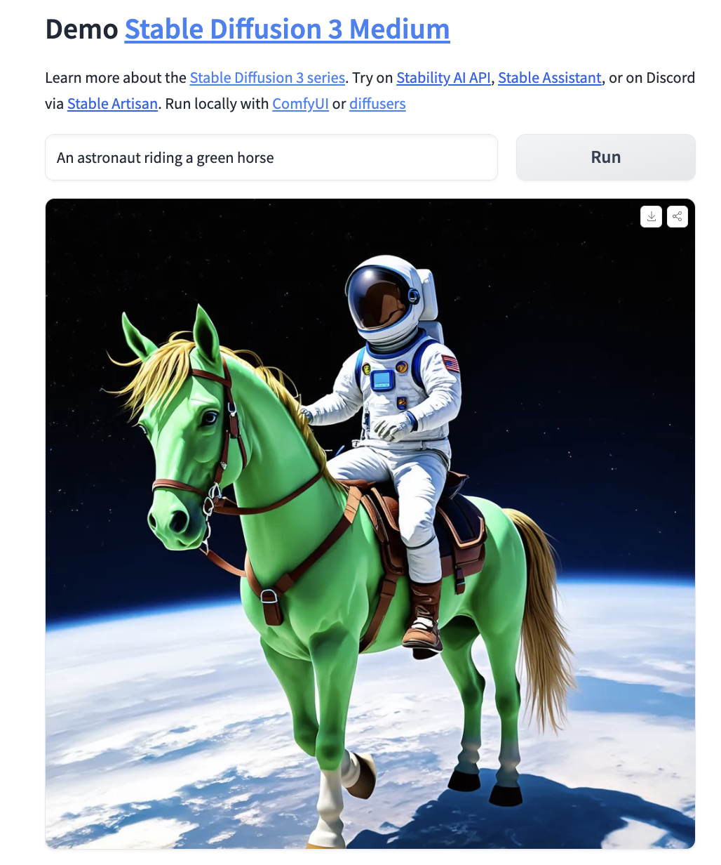 你也可以在HuggingFace上在线体验(https://huggingface.co/spaces/stabilityai/stable-diffusion-3-medium):