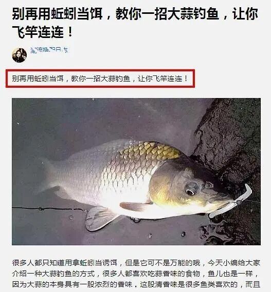 由此看来,大蒜钓鱼真的不靠谱。它可能就是满足了一部分钓友的好奇心,而这些钓友也只有在亲自尝试之后,才会明白结果。钓鱼是个技术活,永远都别想偷懒。