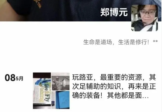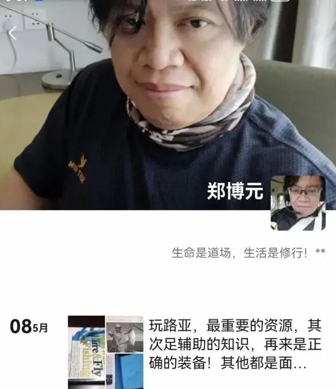 在5月8日,郑博元还在社交平台发布了一条动态,仍在讨论路亚方面的知识。