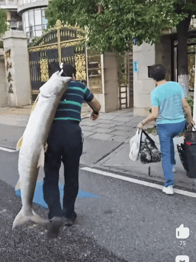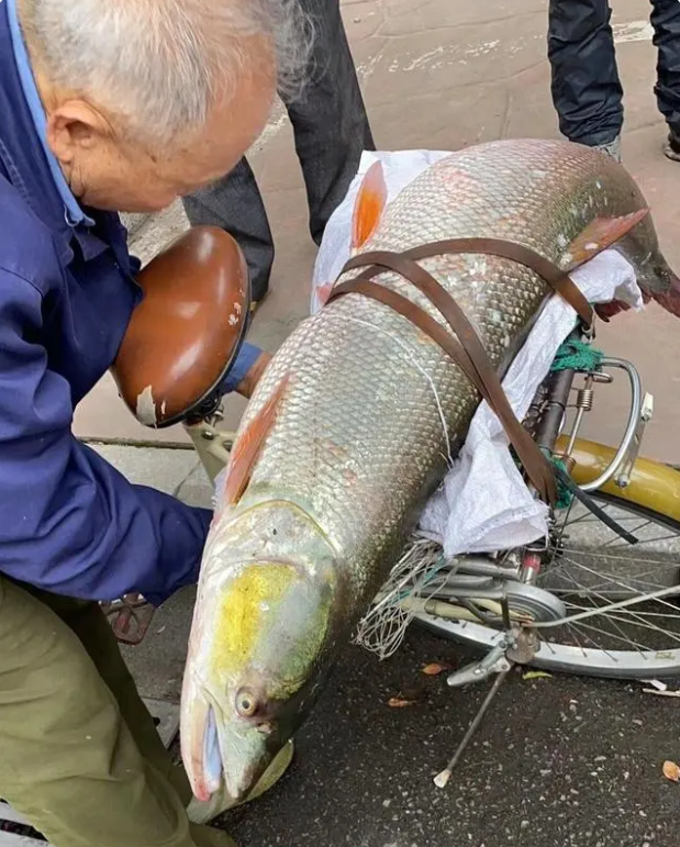 比如,湖南岳阳一位垂钓者钓获了一条70多斤的大鱤鱼,宁可自己背着大鱼,硬生生将其扛回家,也不愿意用车子运走。