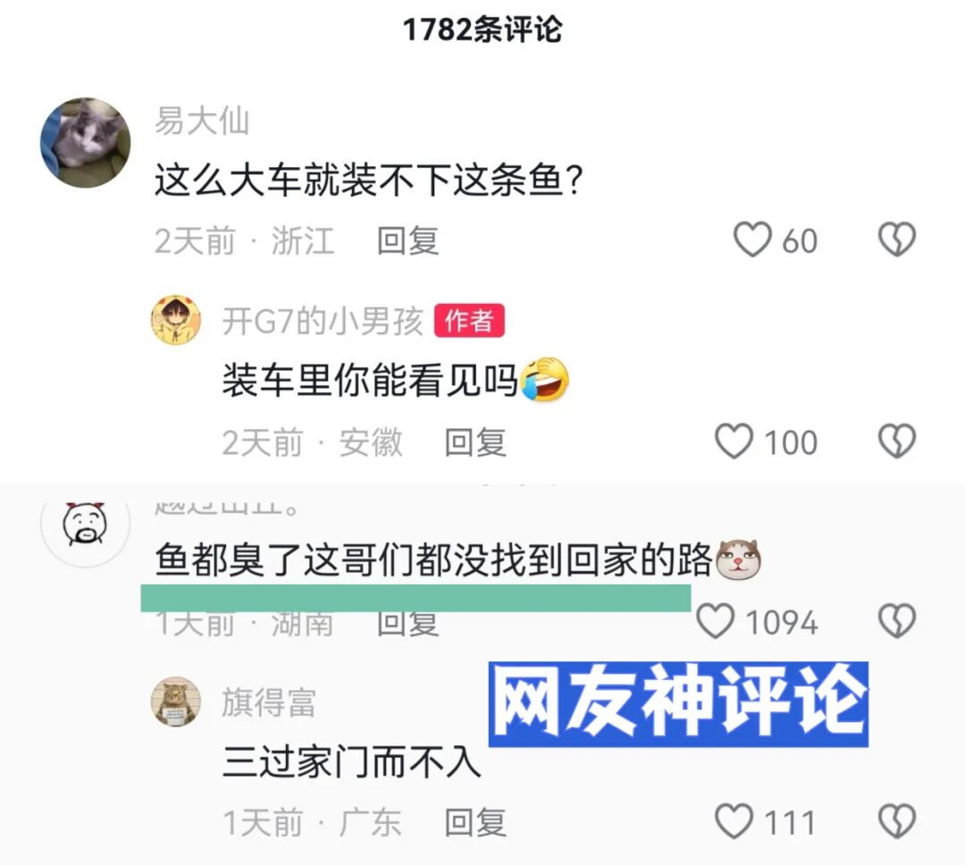网友“易大仙”疑问:“这么大的车,就装不下这条鱼。”
